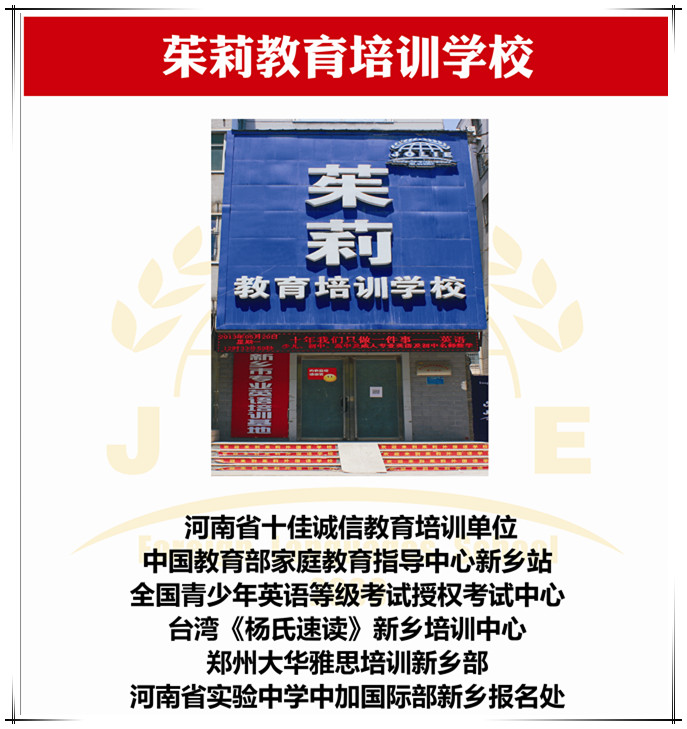 茱莉外国语学校成立于2007年,2009年入驻新乡。学校由资深教育讲师Jolie创办。学校分为茱莉英语教育学院、家庭教育发展学院、素质文化拓展学院和教师成长学院四部分。学校作为新乡地区最大最专业的英语培训基地,主要以幼儿、少儿、初中、高中及成人英语培训为主,同时开设数学等常规课辅导课程。